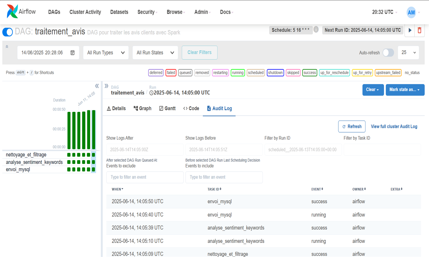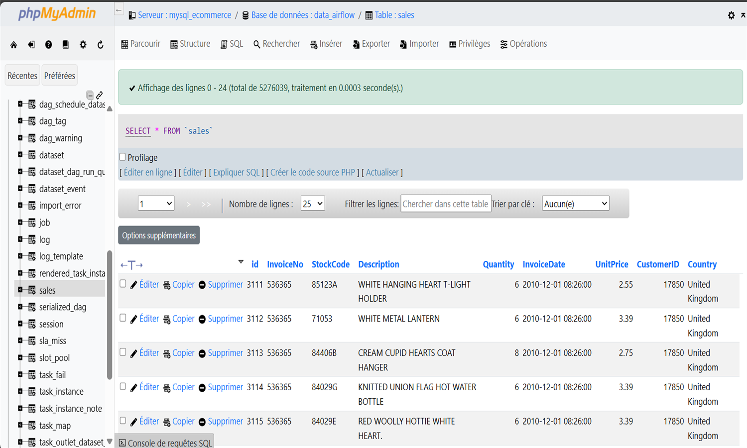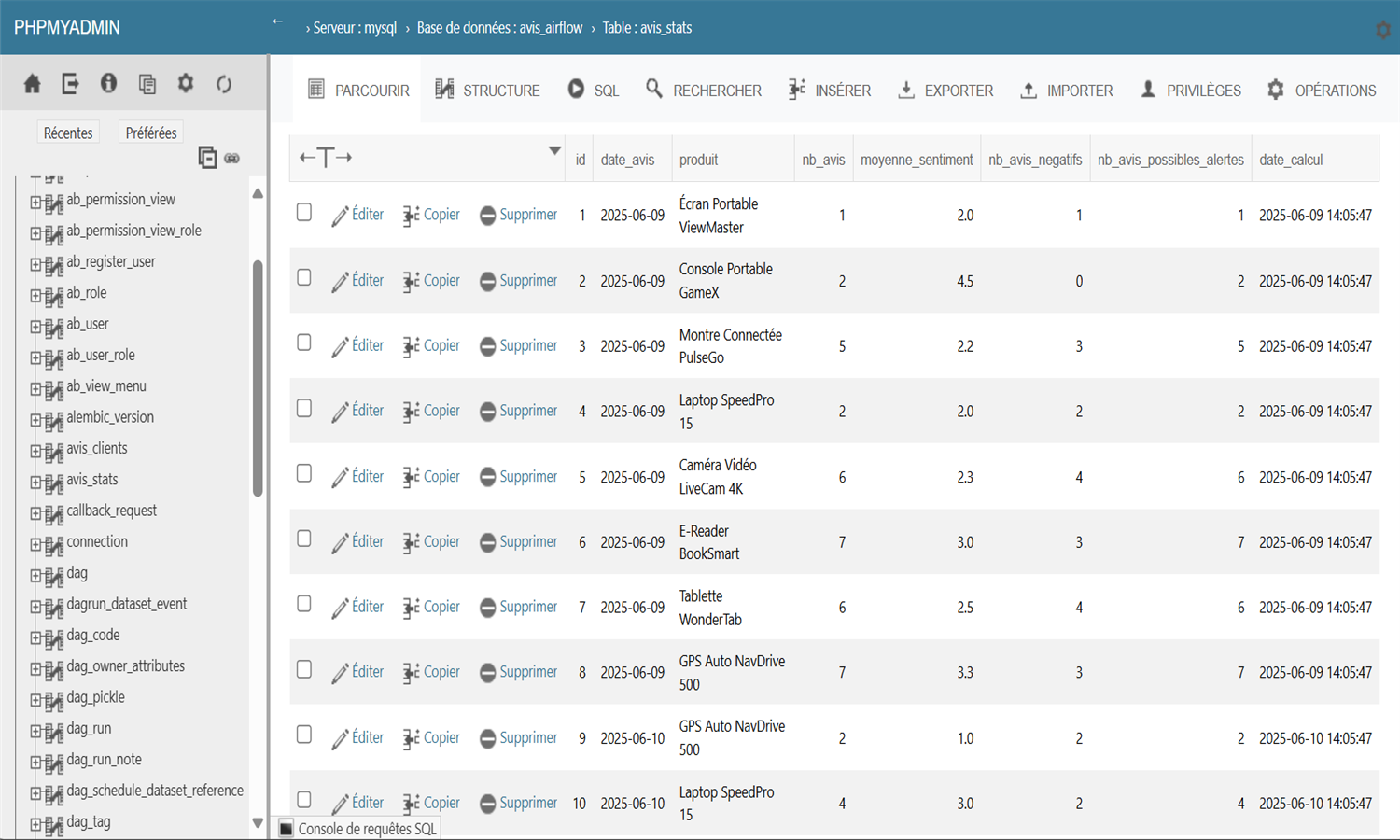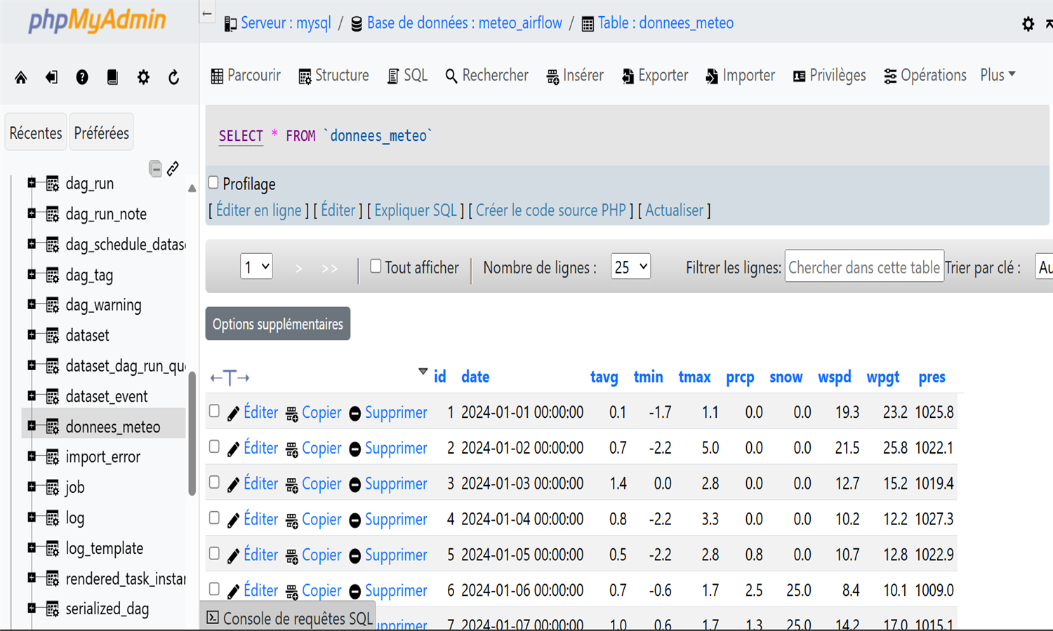 Les données sont stockées dans une base MySQL via une tâche Airflow planifiée quotidiennement à 6h.
