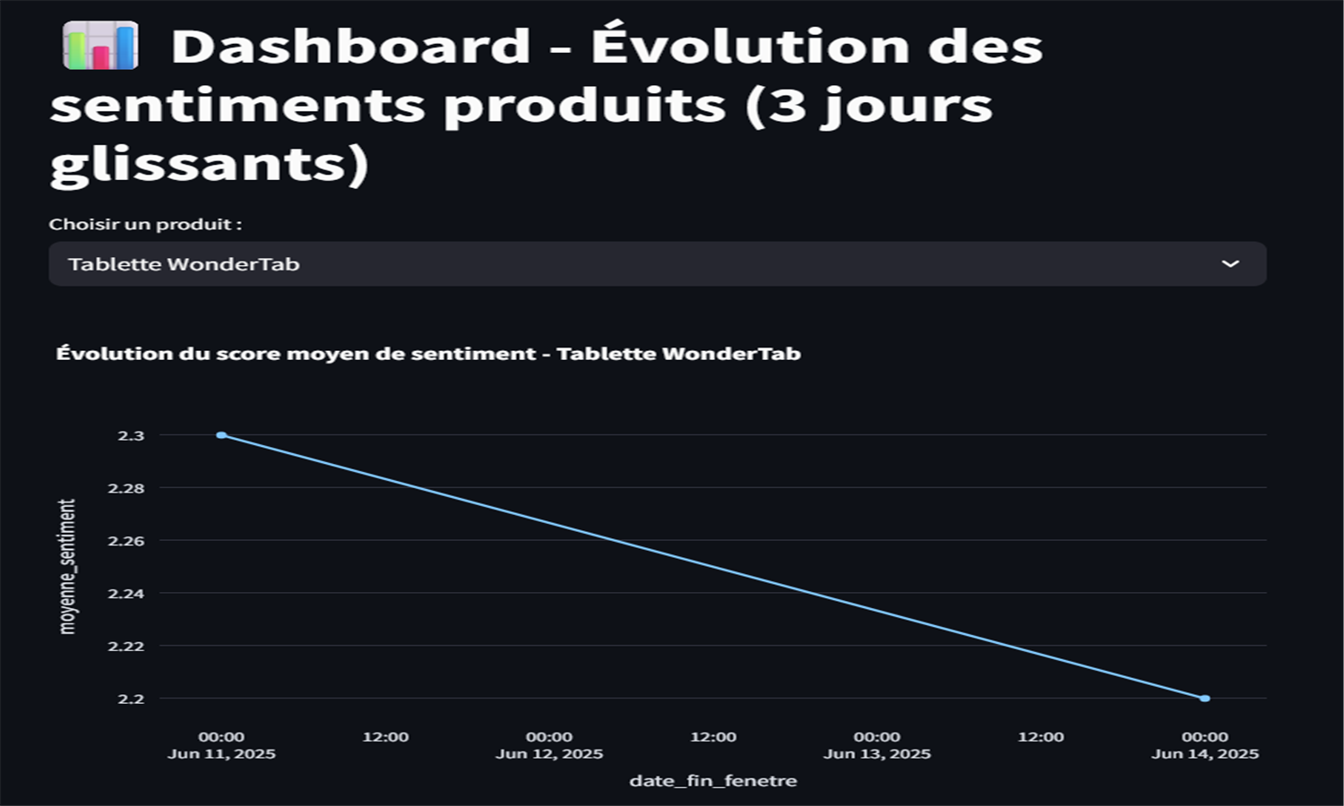 Ce projet met en place un pipeline data engineering complet pour analyser les avis clients et détecter des signaux faibles. Les données sont simulées puis traitées avec Spark (nettoyage, NLP, détection de mots-clés et sentiments), orchestrées via Airflow, et stockées dans MySQL. Une analyse glissante permet de détecter les évolutions de sentiment sur 3 jours. Les résultats sont visualisés dans un dashboard Streamlit interactif. L’infrastructure est entièrement conteneurisée avec Docker Compose. Redis est utilisé pour Airflow, et phpMyAdmin permet d’explorer les données. Chaque étape du pipeline est exécutée quotidiennement à heures fixes.