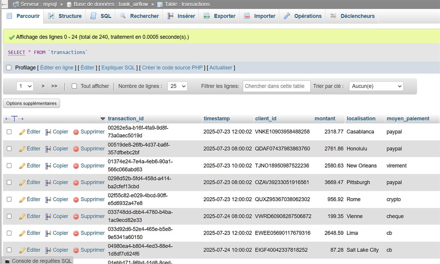 phpMyAdmin permet de visualiser les données, et un dashboard Streamlit est prévu.