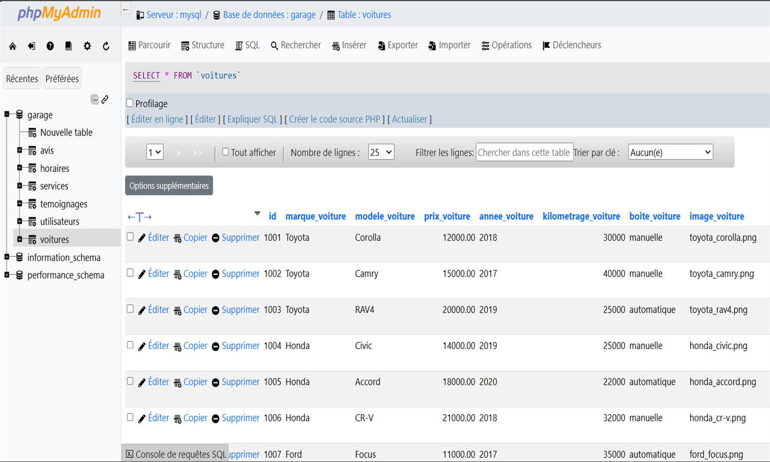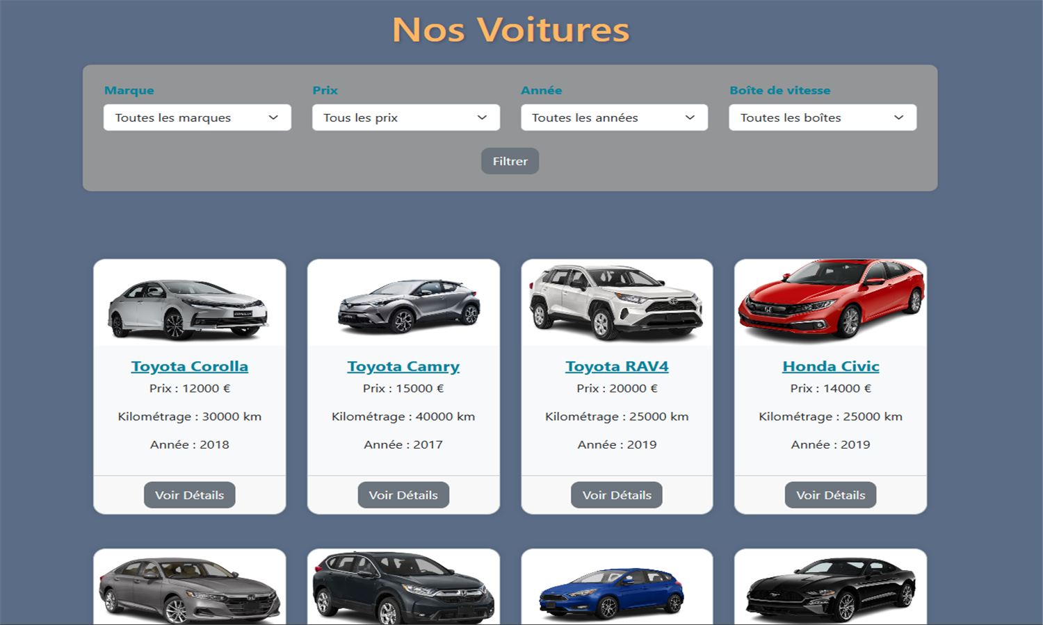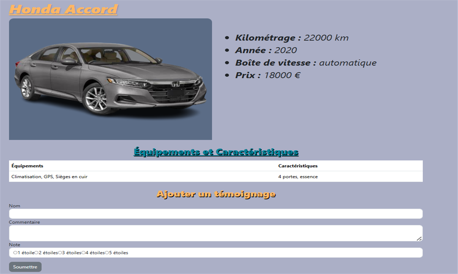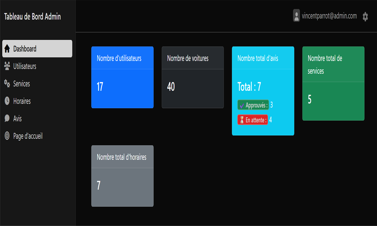Développée avec Symfony 7.1, cette application propose une interface complète pour gérer voitures, utilisateurs, avis, témoignages et services.